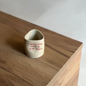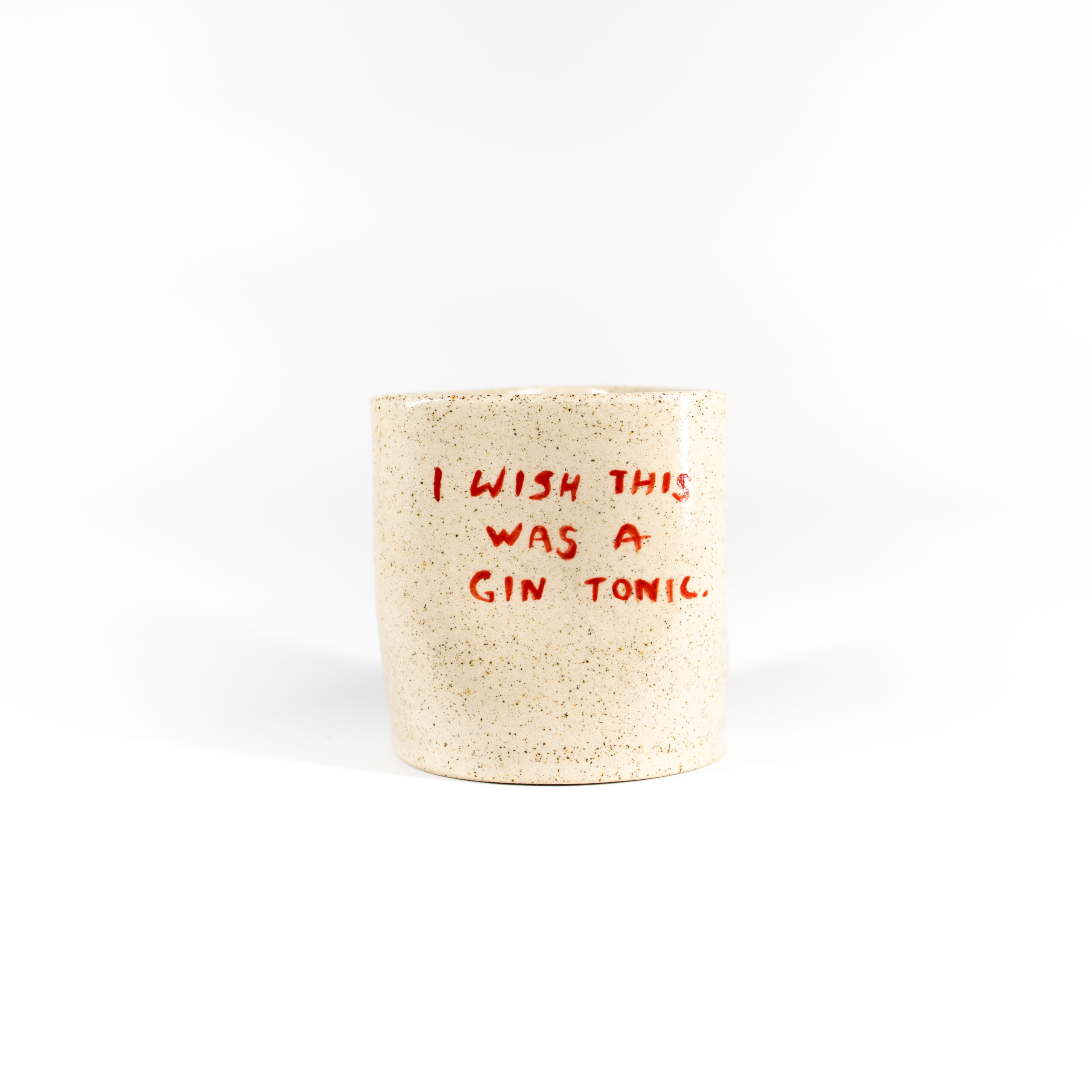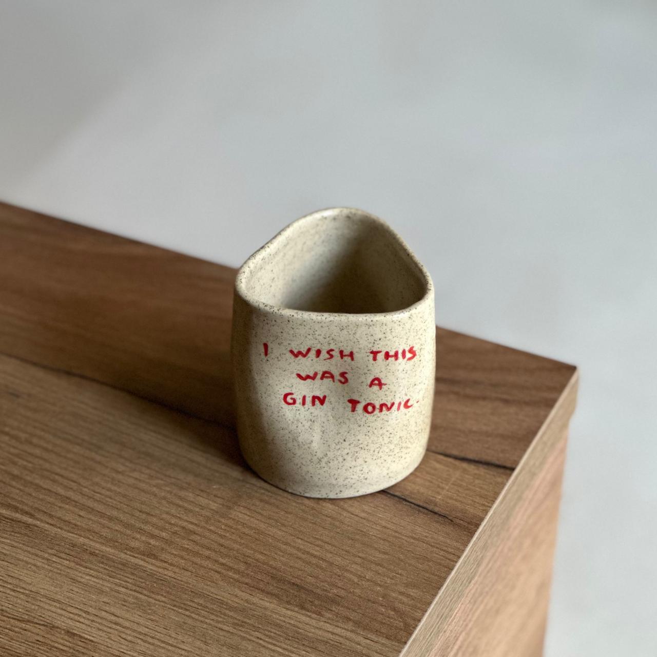 Χειροποίητη κεραμική κούπα από πηλό stoneware με την φράση «I wish this was a gin tonic» και διάφανο γυάλωμα. Ψήνεται στους 1270°C και είναι ασφαλής για τρόφιμα και ποτά. Ιδανική για μεγάλες ποσότητες καφέ.